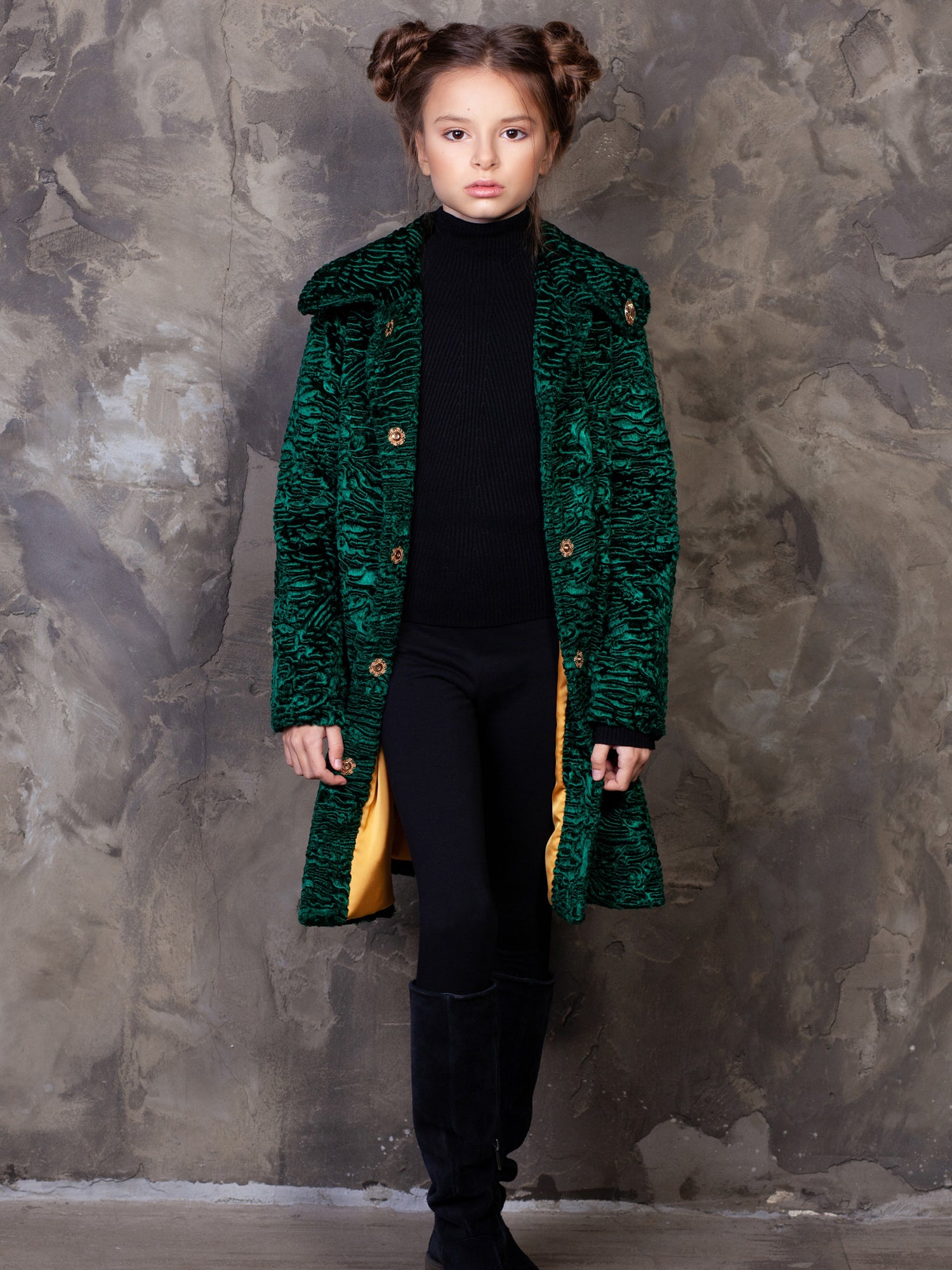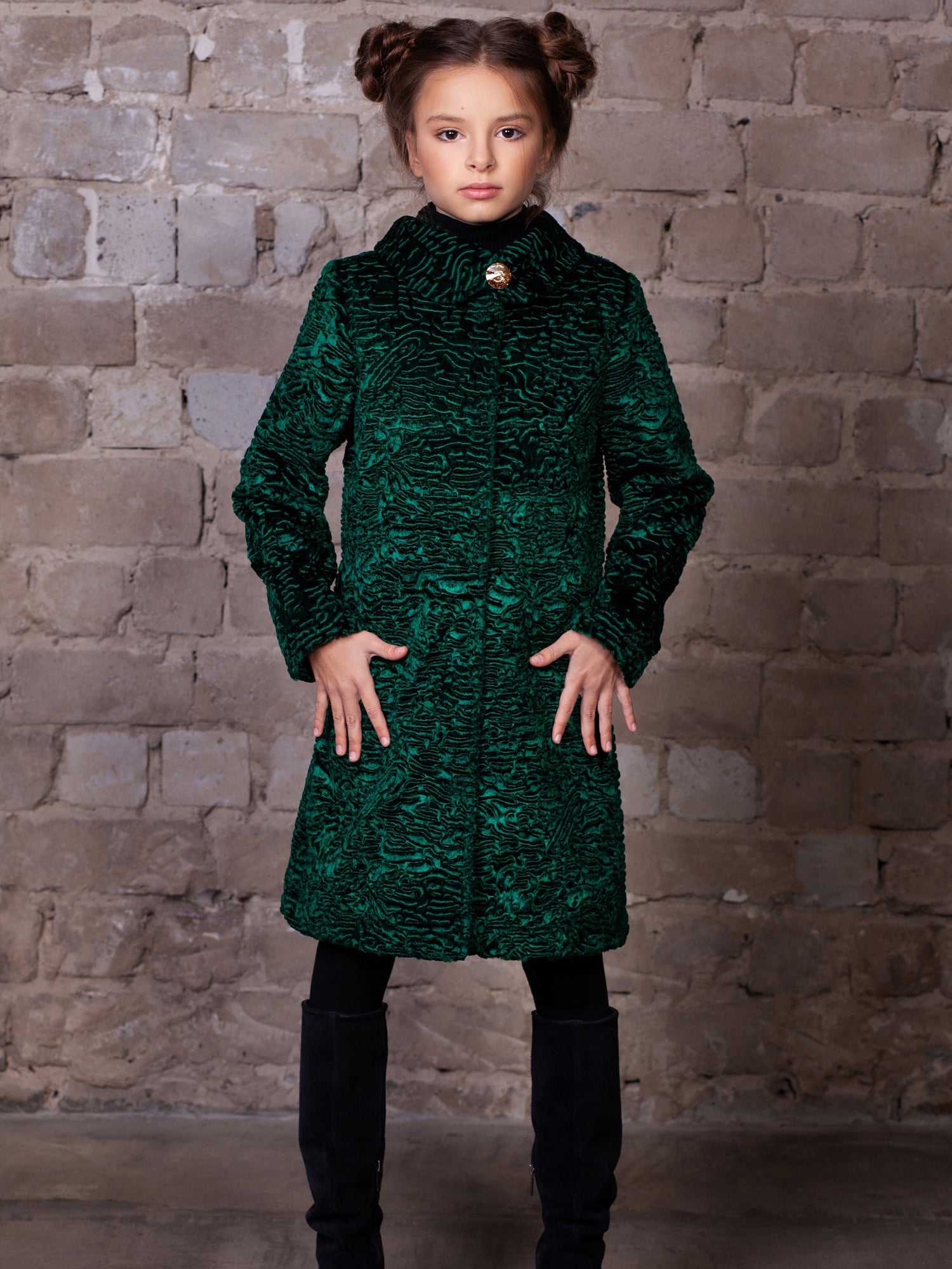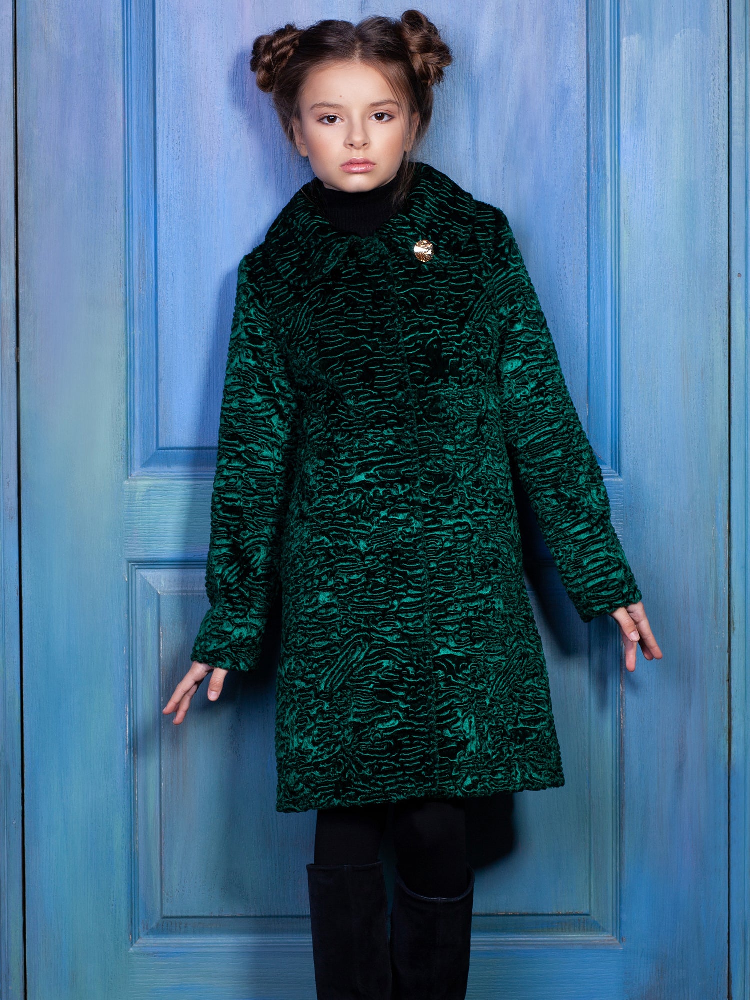 Дитяче пальто з еко-хутра - Каракуль Смарагд
