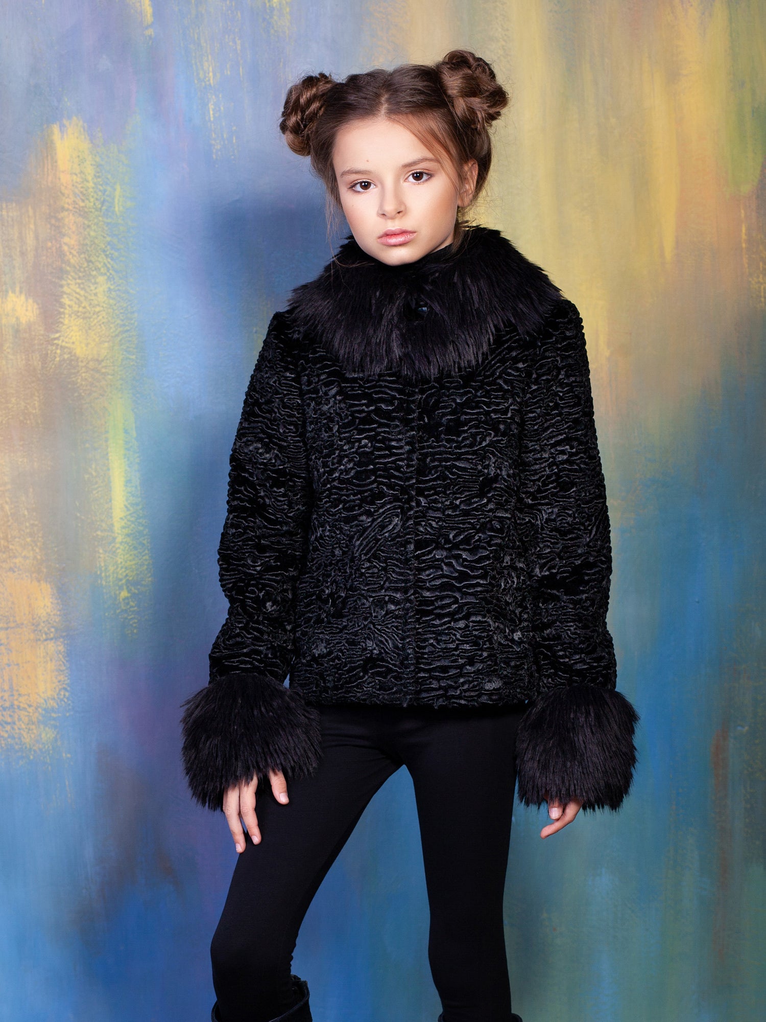 Дитяче пальто з еко-хутра - Каракуль Обсидіан