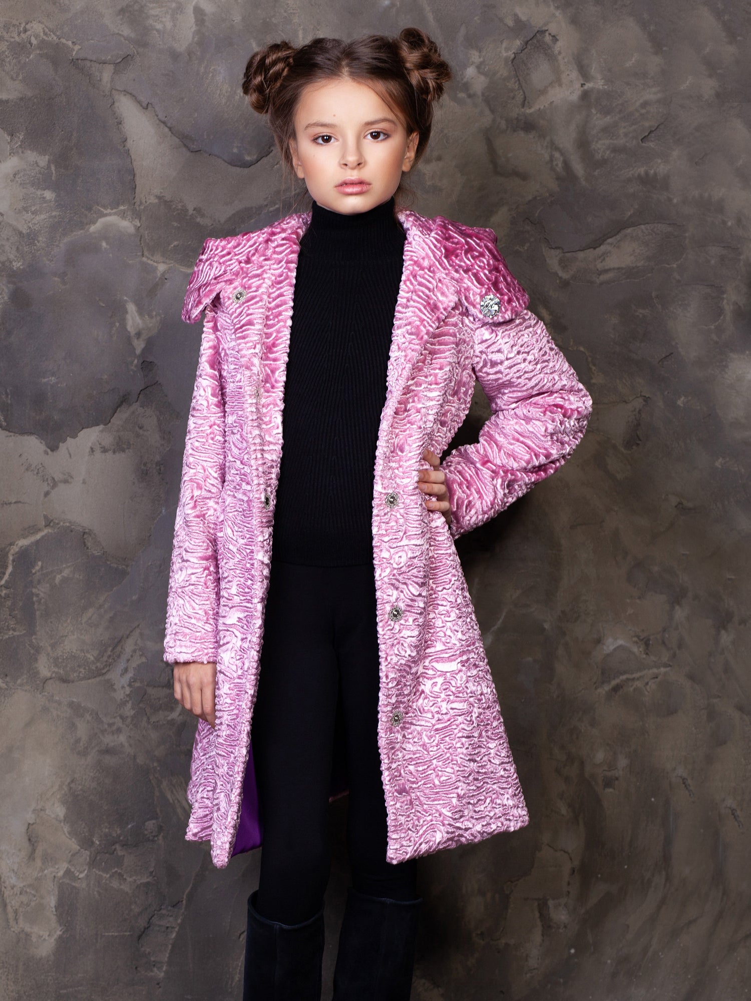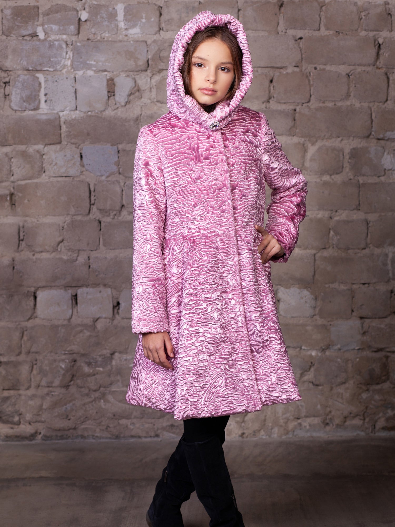 Дитяче пальто з еко-хутра - Каракуль Кварц