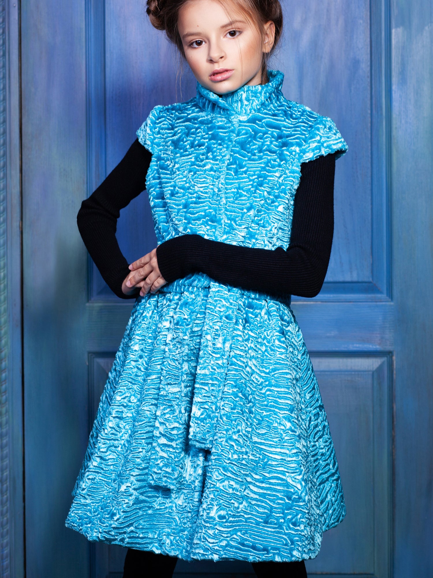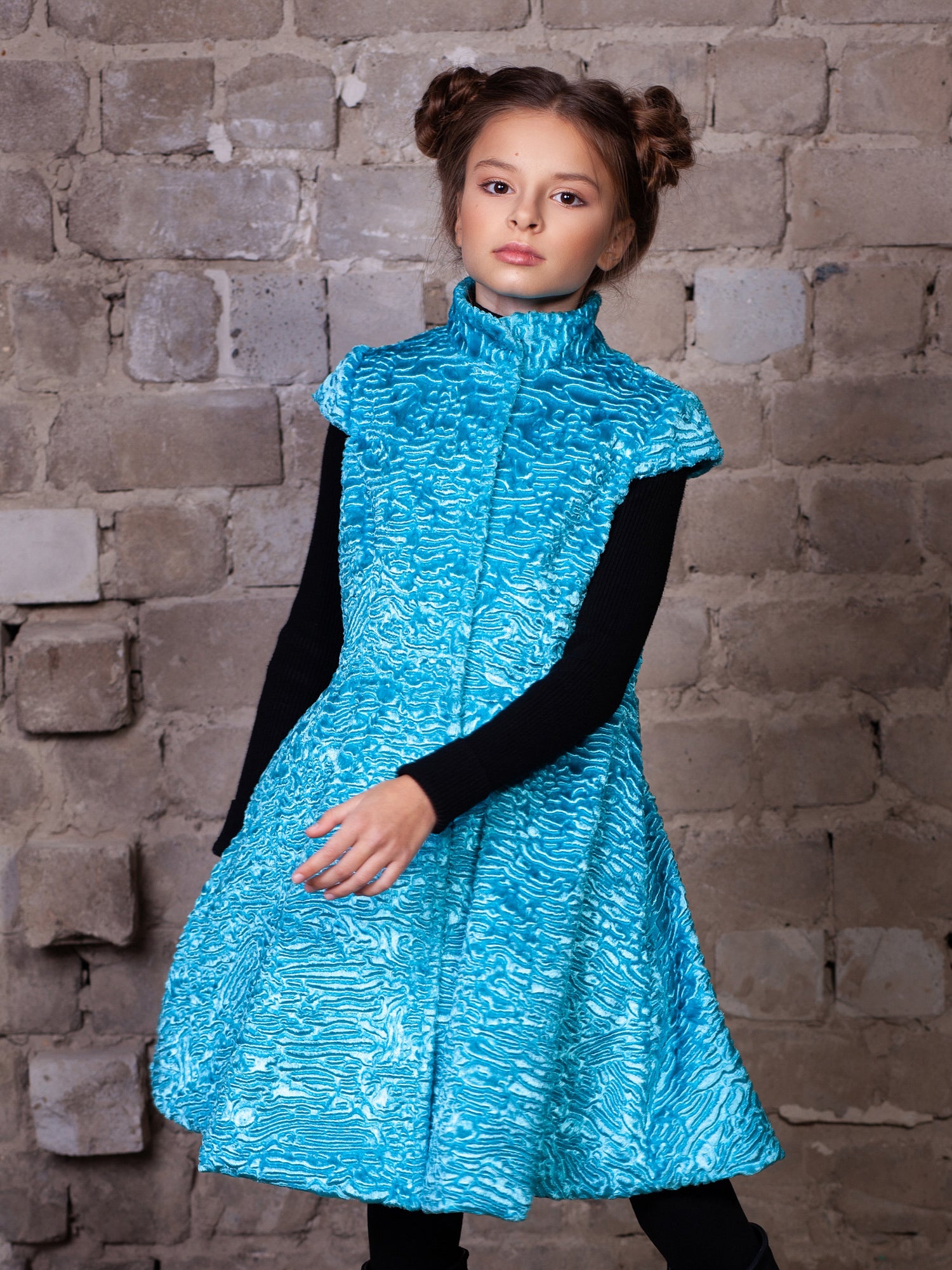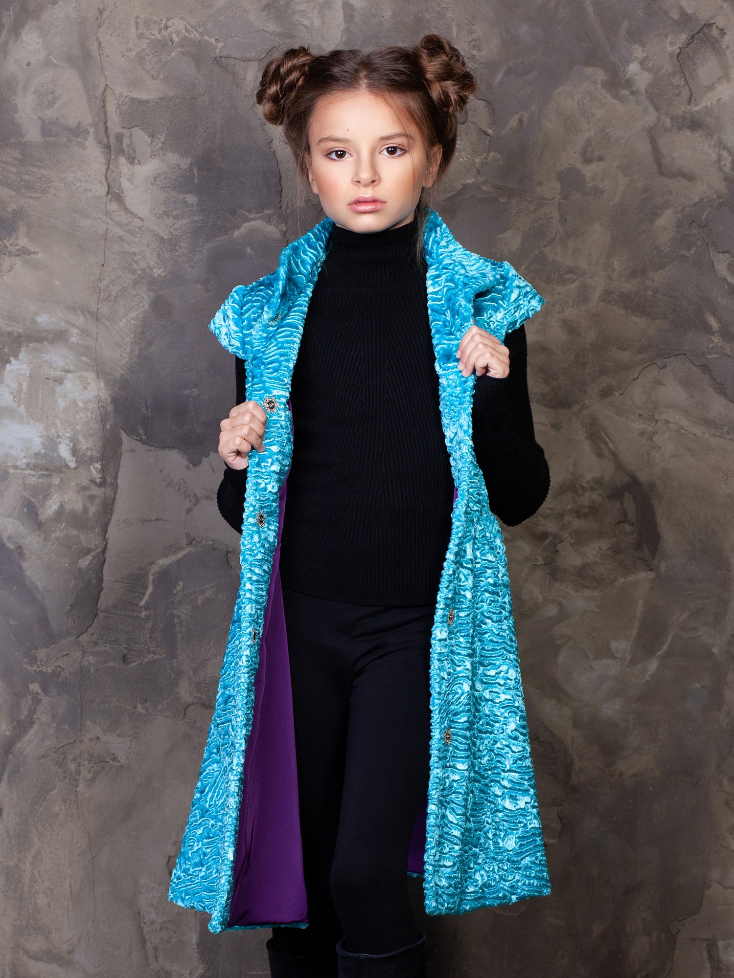 Дитячий жилет з еко-хутра - Каракуль Аквамарин