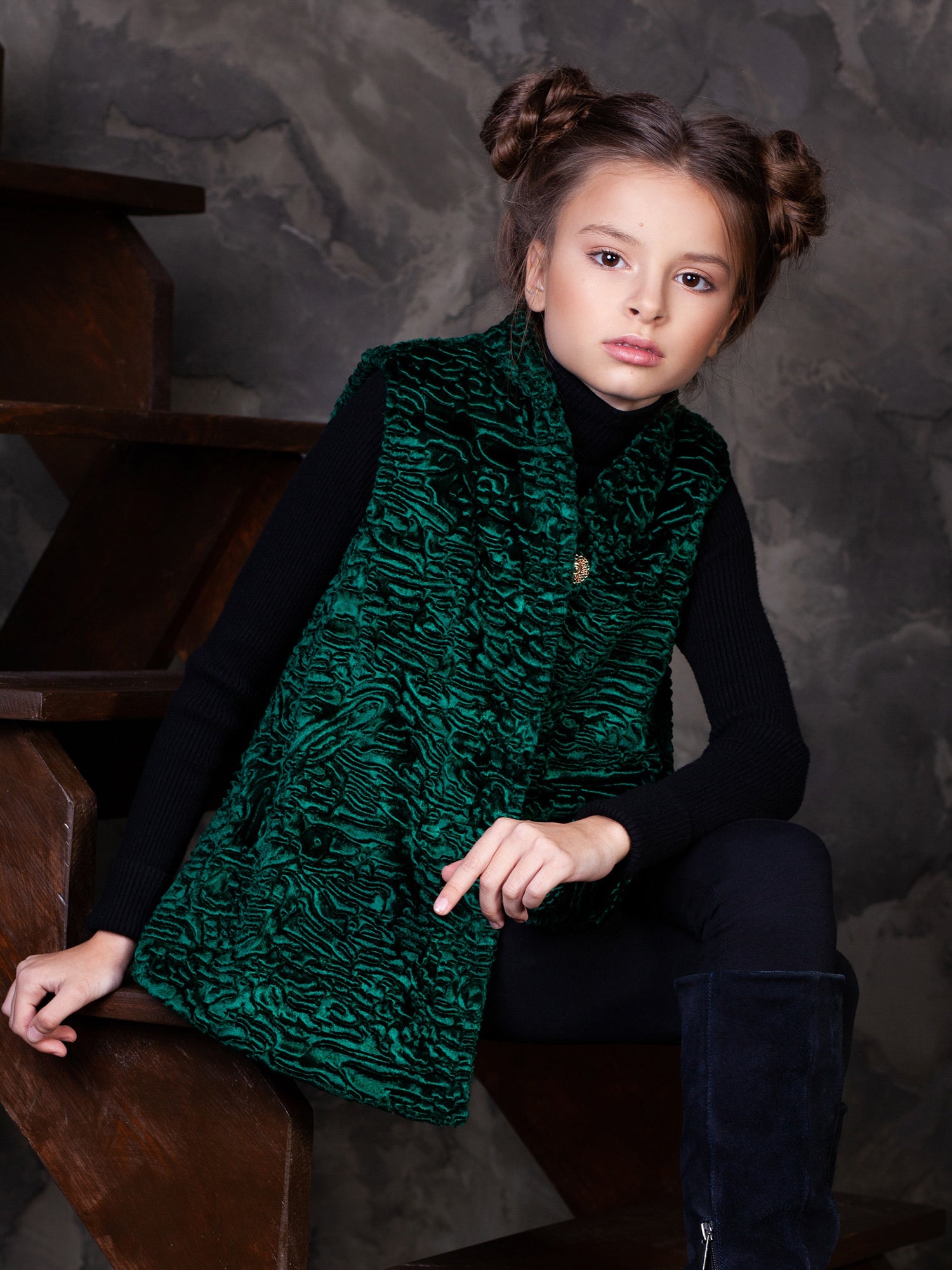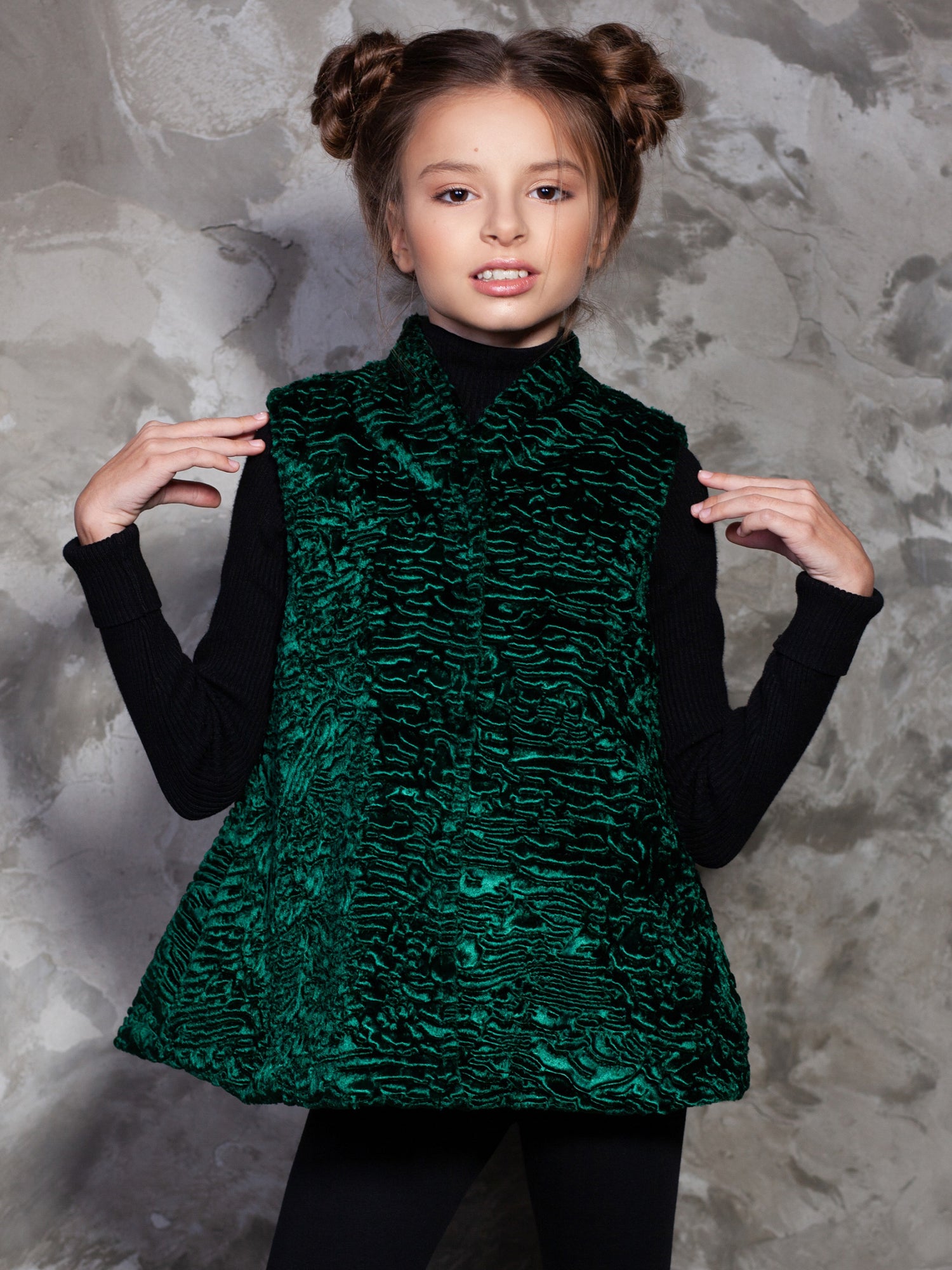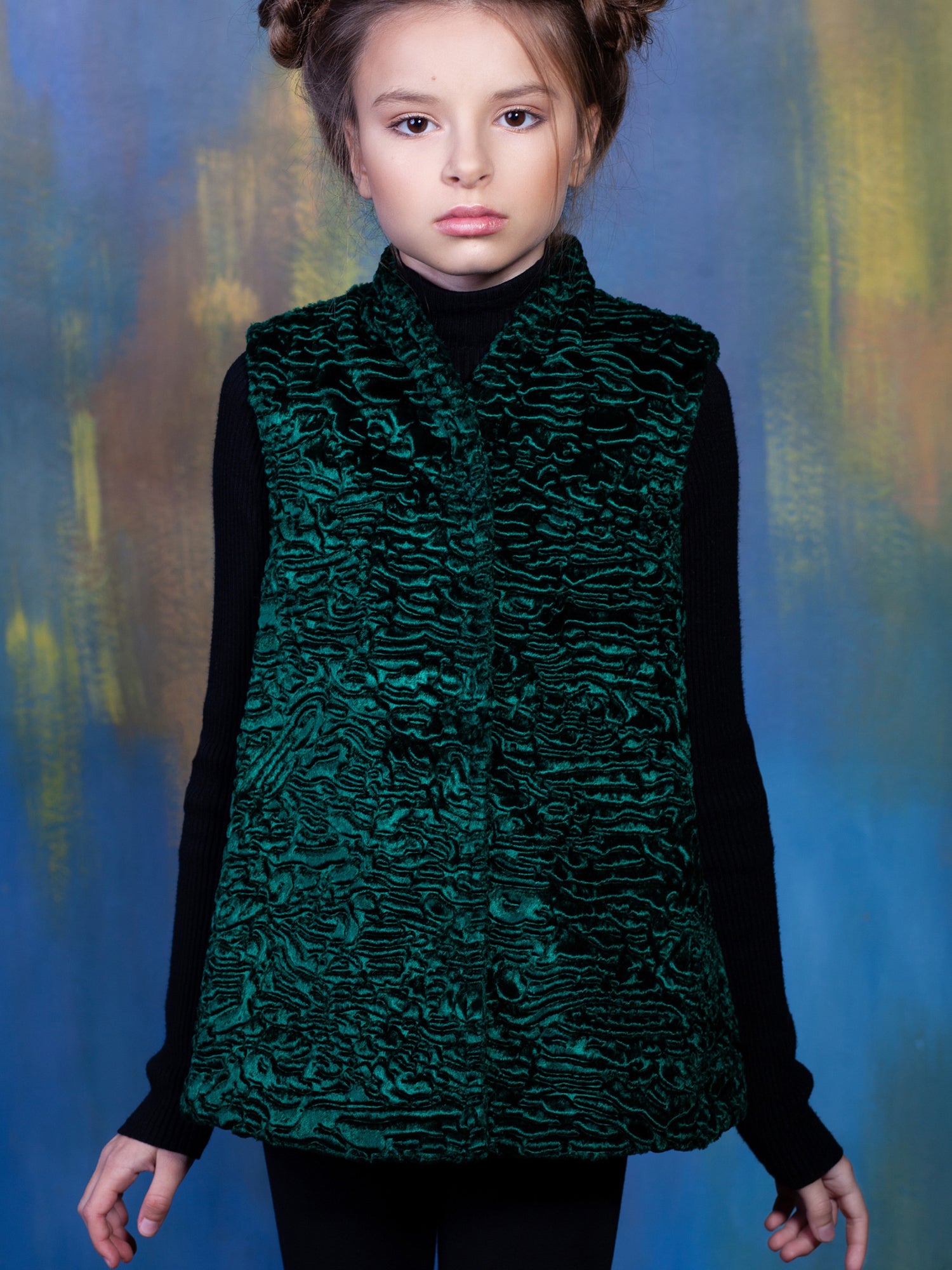 Дитячий жилет з еко-хутра - Каракуль Смарагд