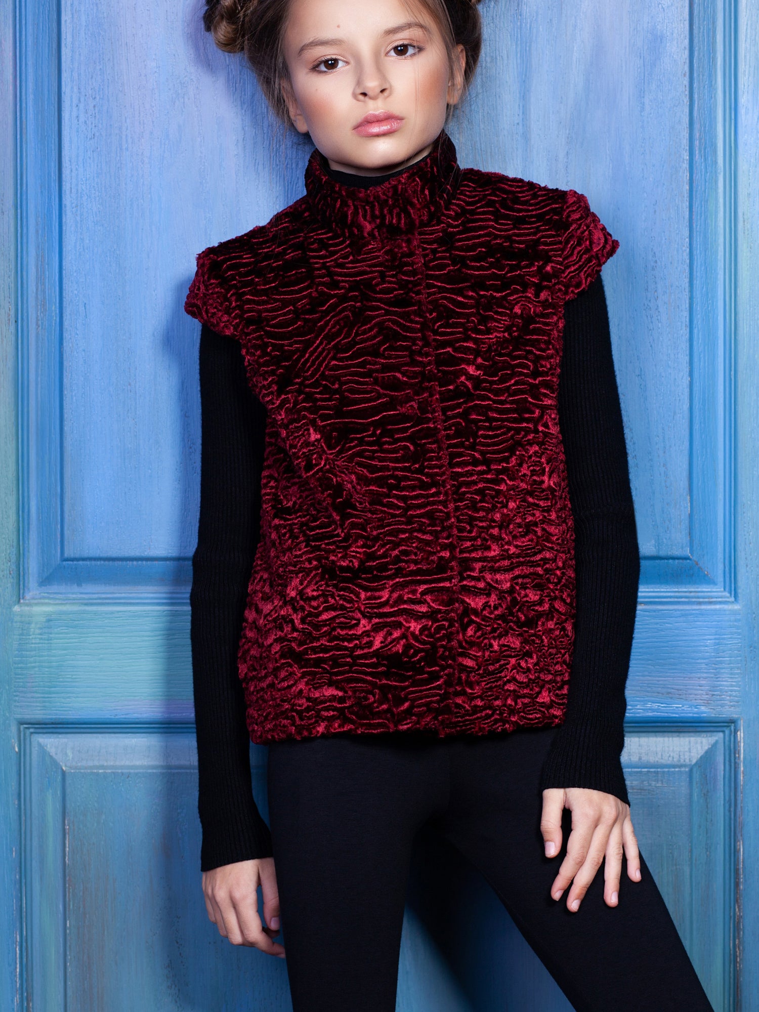 Дитячий жилет з еко-хутра - Каракуль Гранат