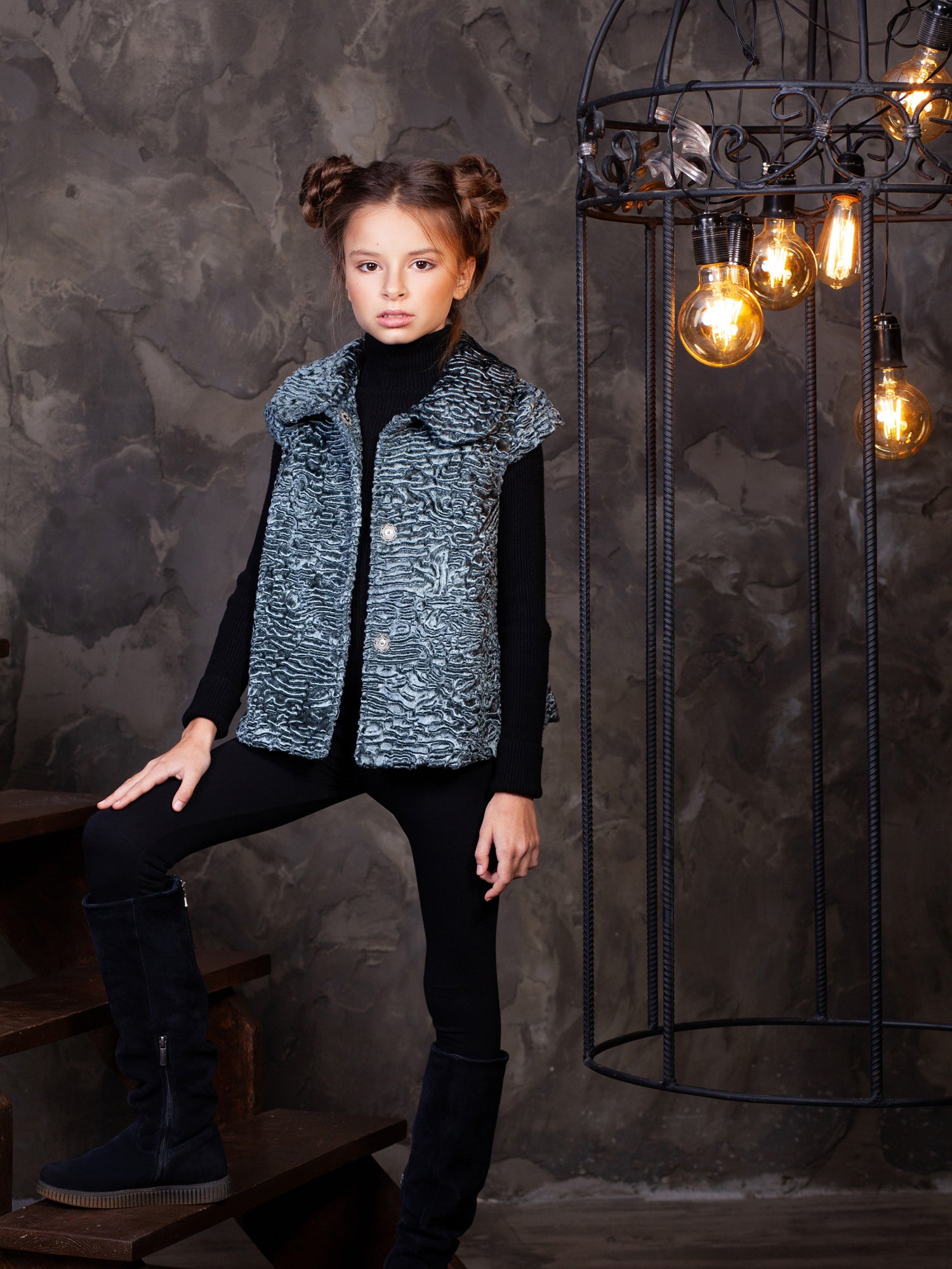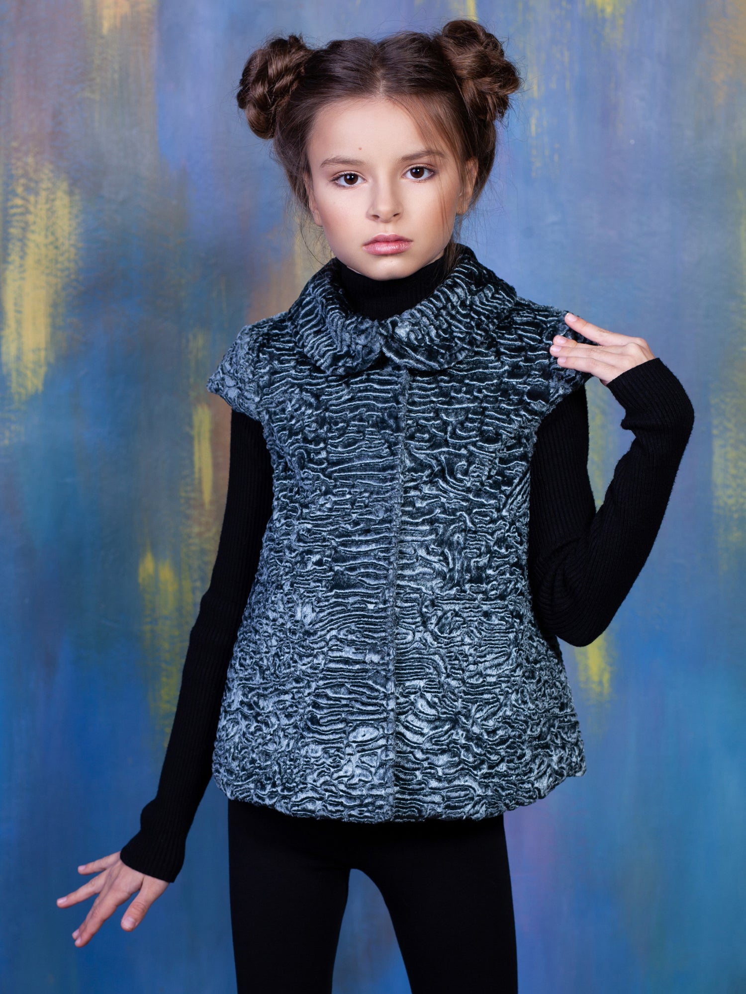 Дитячий жилет з еко-хутра - Каракуль Маренго