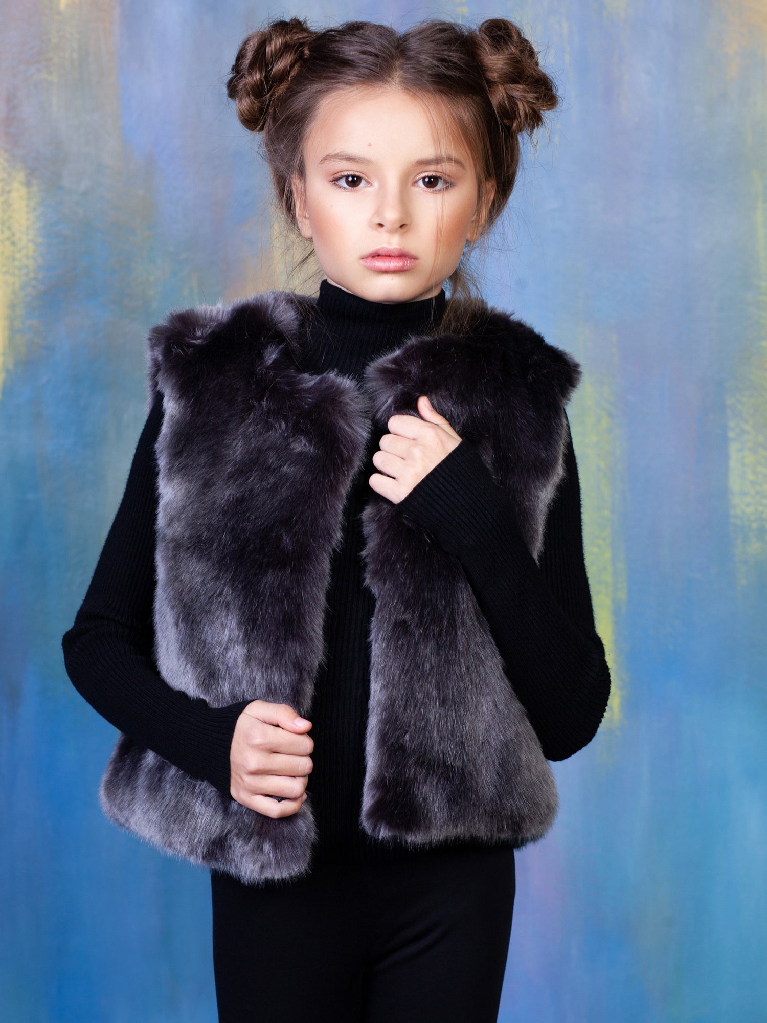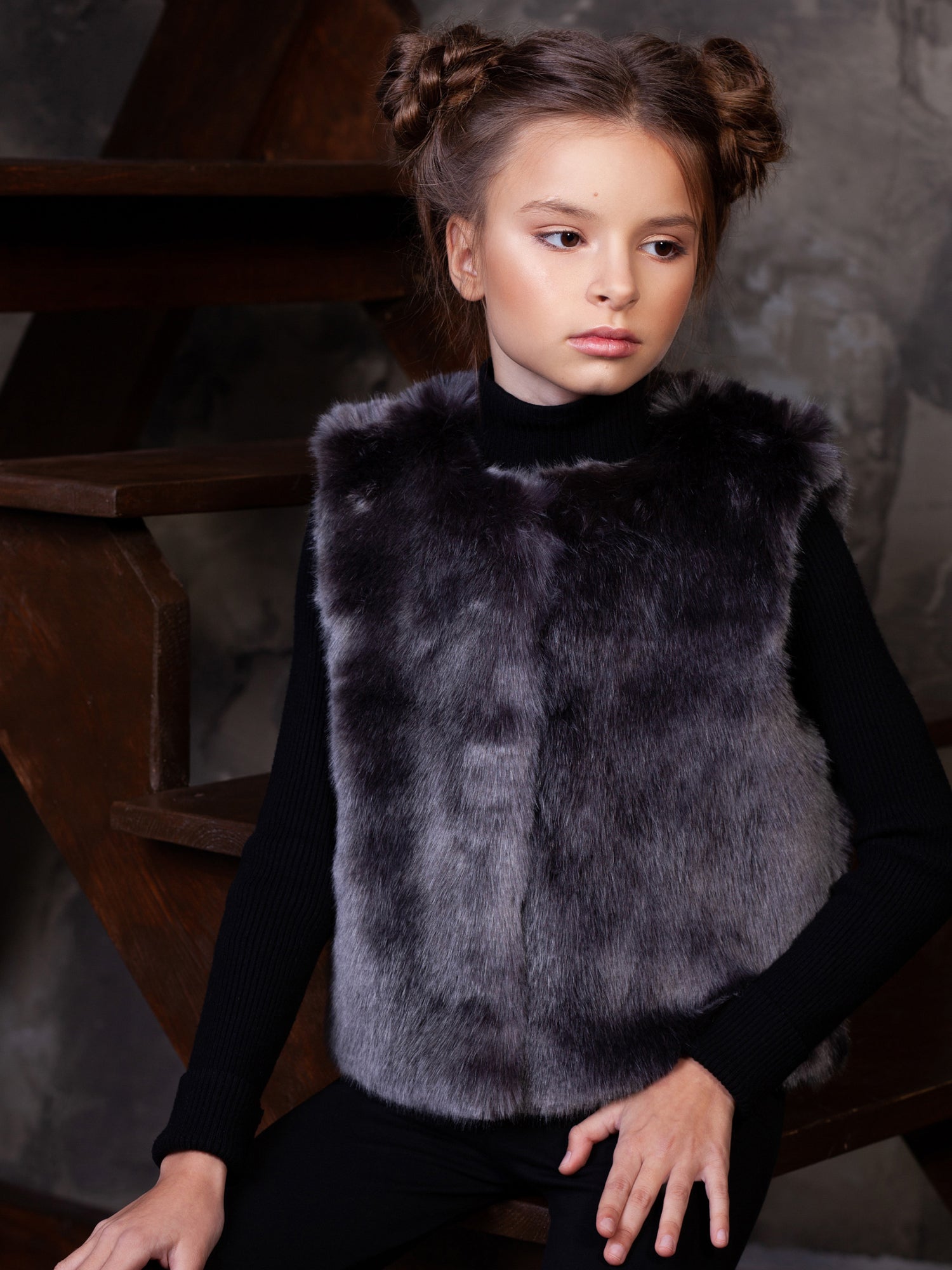 Дитячий жилет з еко-хутра - Соболь Графіт
