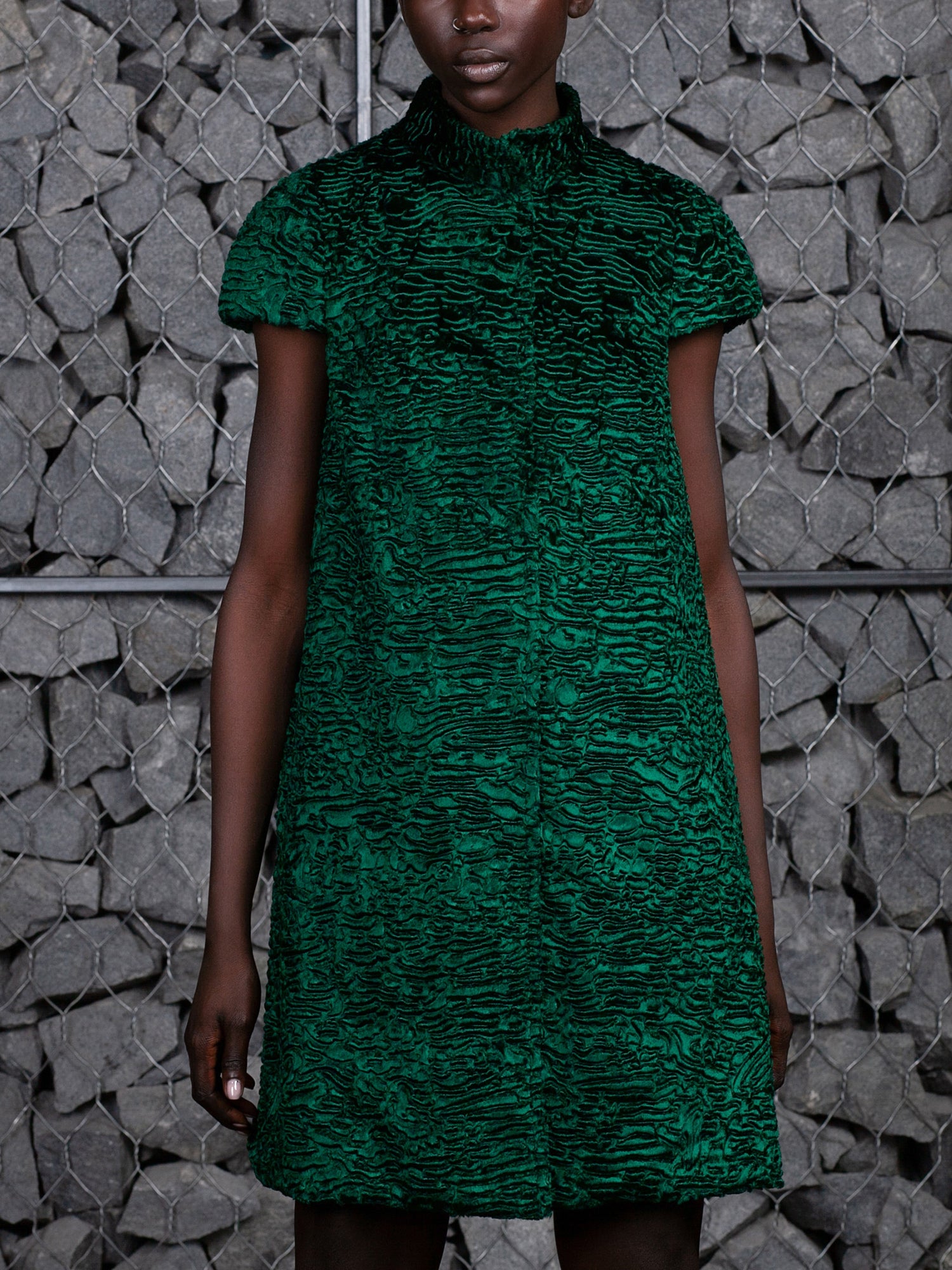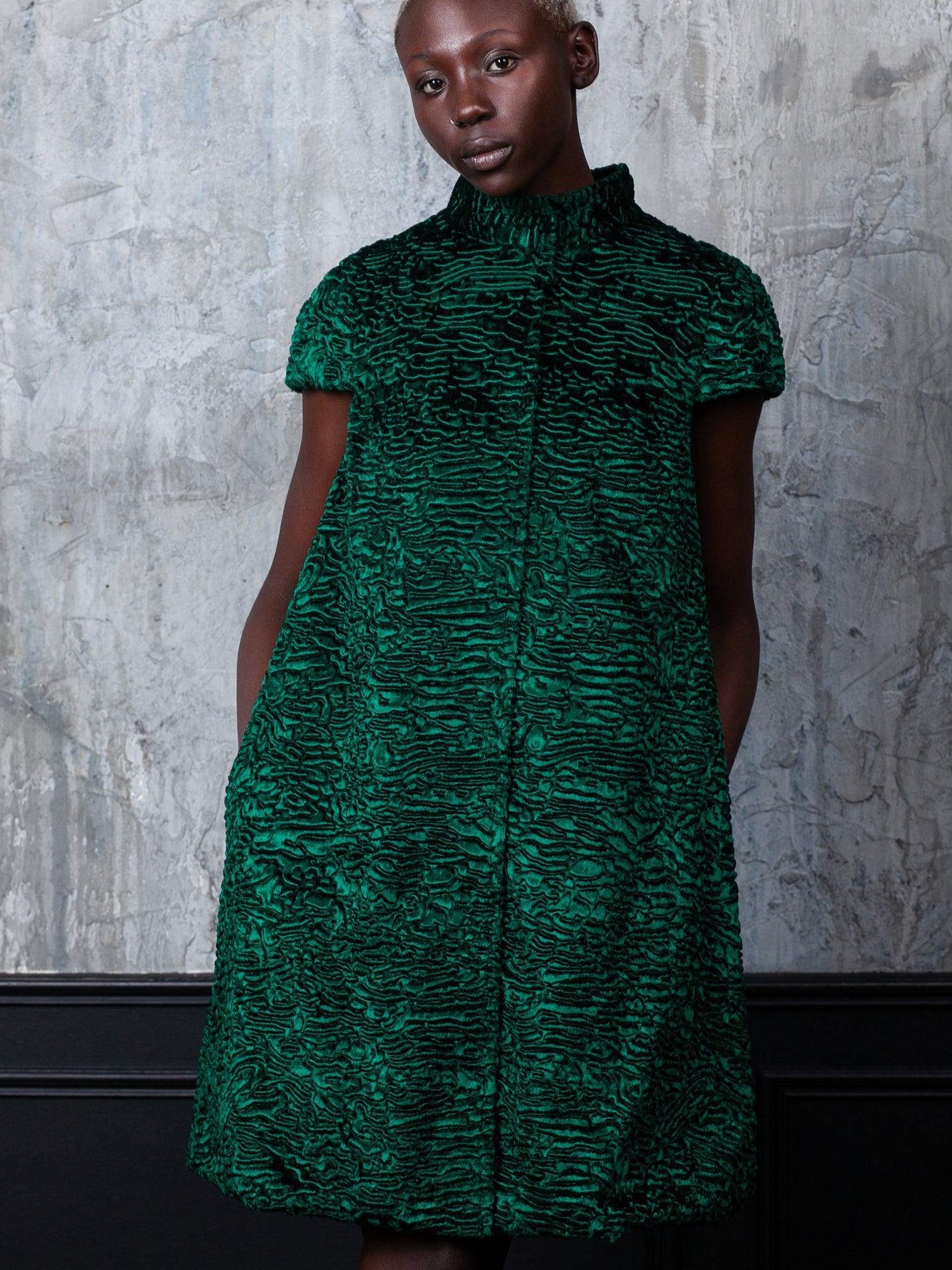 Жіночий жилет з еко-хутра – Каракуль Смарагд