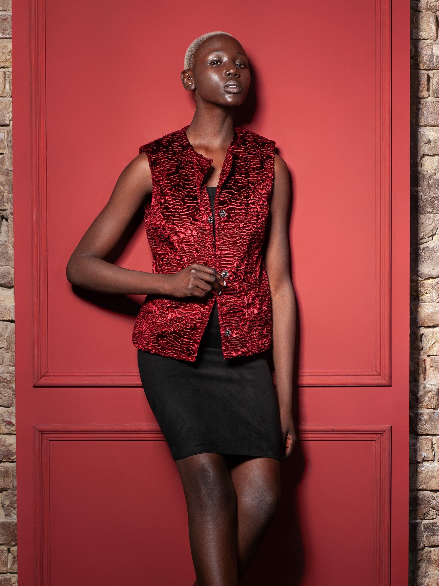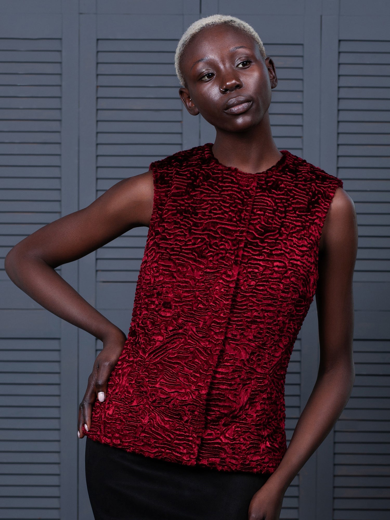 Жіночий жилет з еко-хутра – Каракуль Гранат