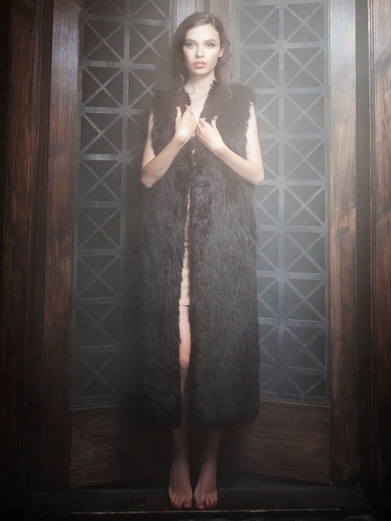 Жіночий жилет з еко-хутра – Лама Обсидіан